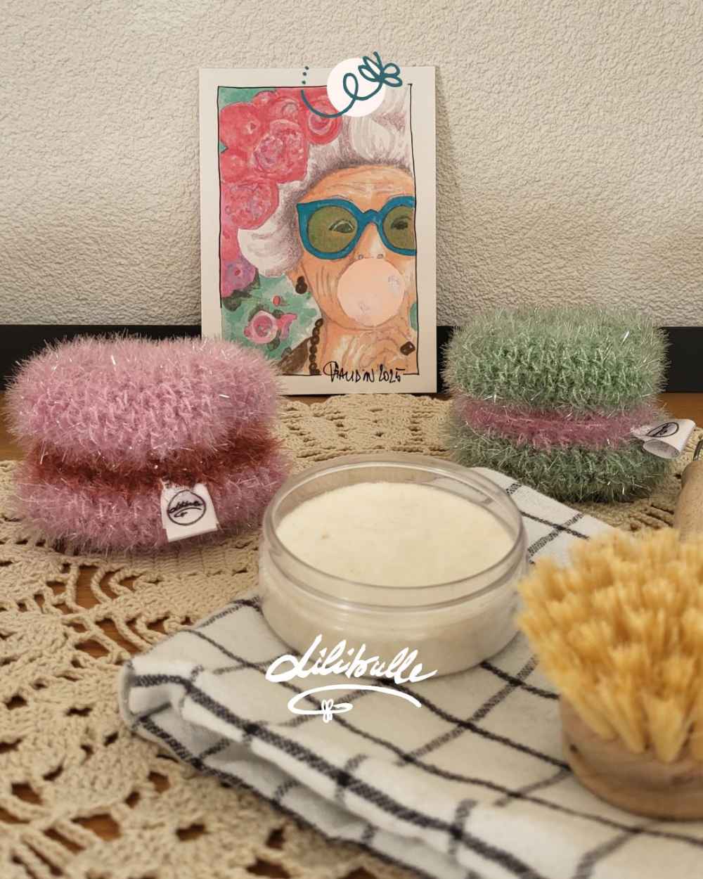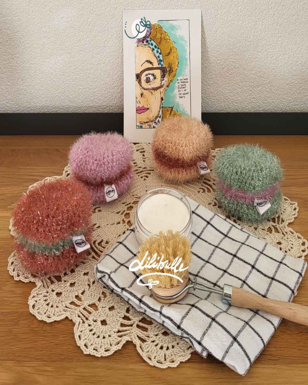 " Lilibulle vous aide à limiter le gaspillage et les déchets en créant pour vous des éponges lavables, colorées et éthiques. Un artisanat durable, local et social.